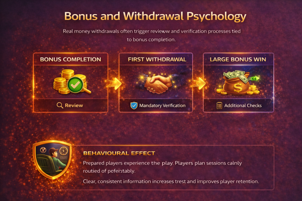 Bonus completion often intersects with verification and withdrawal workflows. When bonus-related funds become eligible for withdrawal, the system may trigger account reviews, identity checks, or payment verification. Larger bonus wins typically receive additional scrutiny due to compliance requirements.